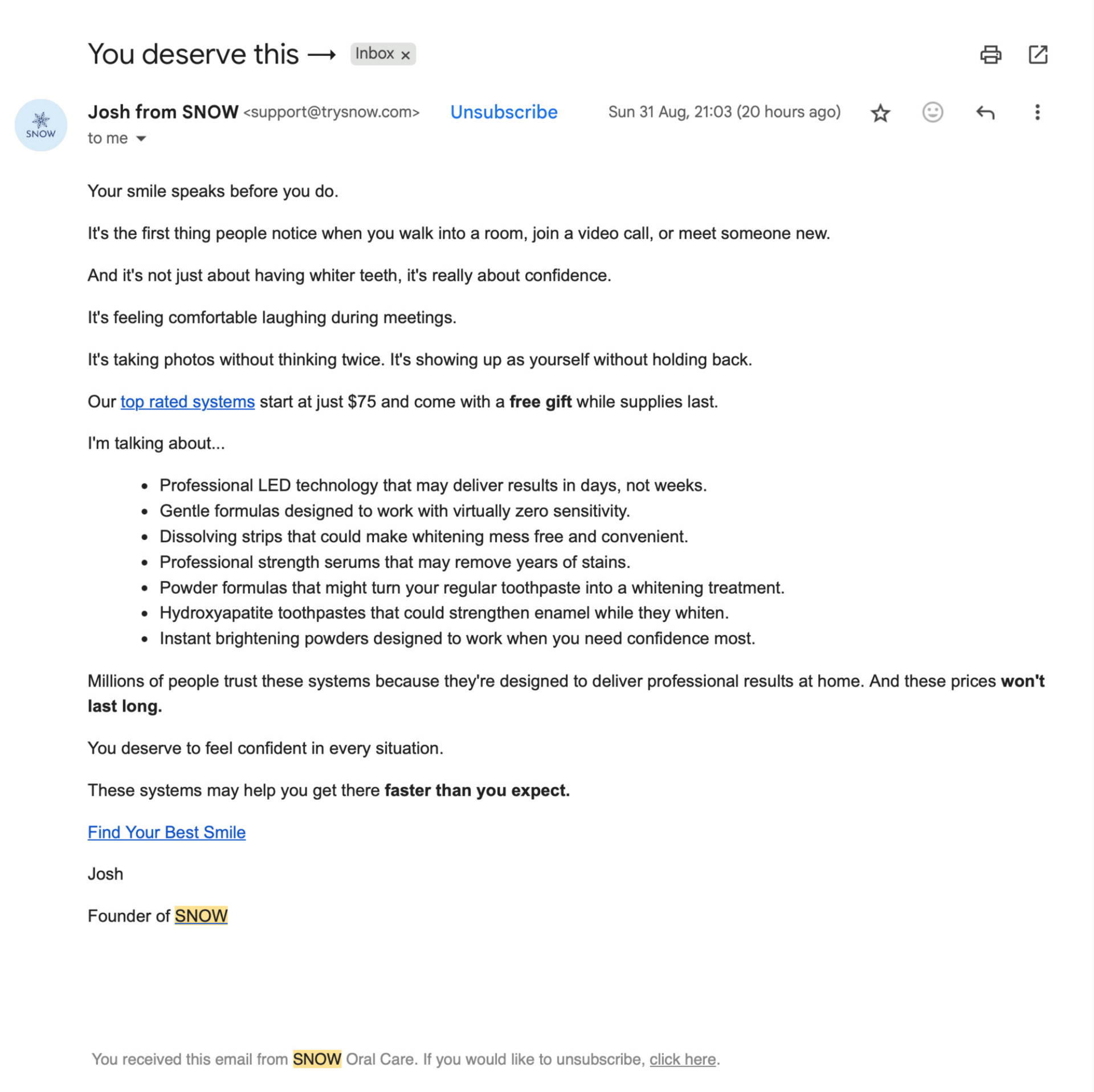 Subject Line: You deserve this →